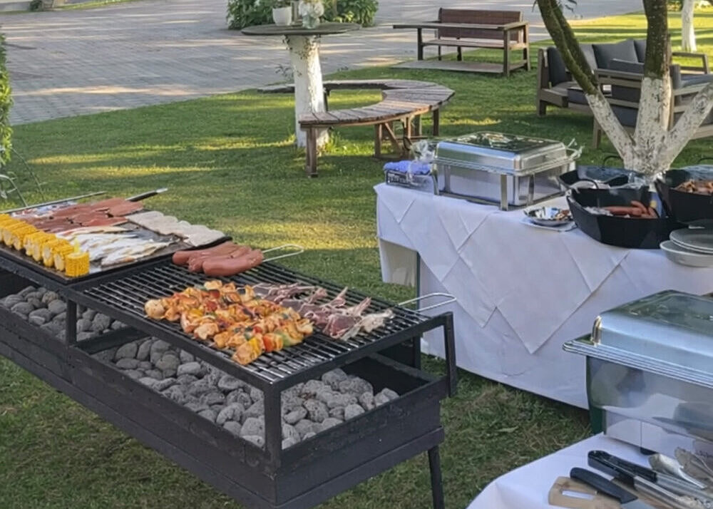 ein. Freut euch auf frische Köstlichkeiten vom Holzkohlengrill – von saftigen Fleischklassikern über kreative vegetarische Highlights bis hin zu aromatischen Beilagen. Ergänzt wird das Angebot durch ein liebevoll zusammengestelltes Vorspeisen- & Dessertbuffet. Live-Musik sorgt für entspannte Sommerstimmung und macht den Abend zu einem genussvollen Treffpunkt unter freiem Himmel.